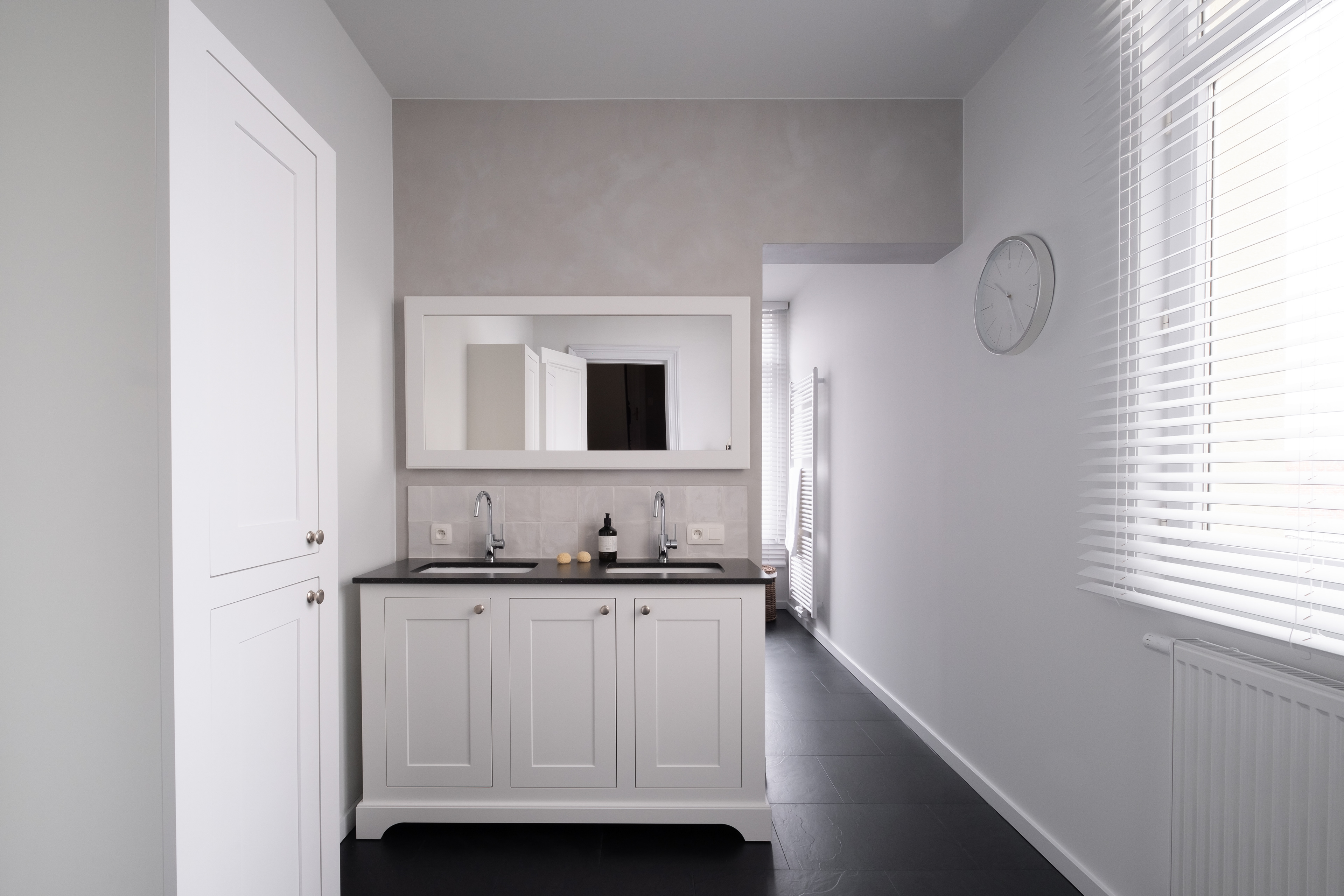 Het grootste voordeel is de naadloze afwerking, wat zorgt voor doorlopende interieurs van muur tot vloer, tot de trap en zelfs meubels en maatkasten. De naadloze afwerking maakt het bijzonder geschikt voor badkamers en douches, geen vervuilde voegen meer!