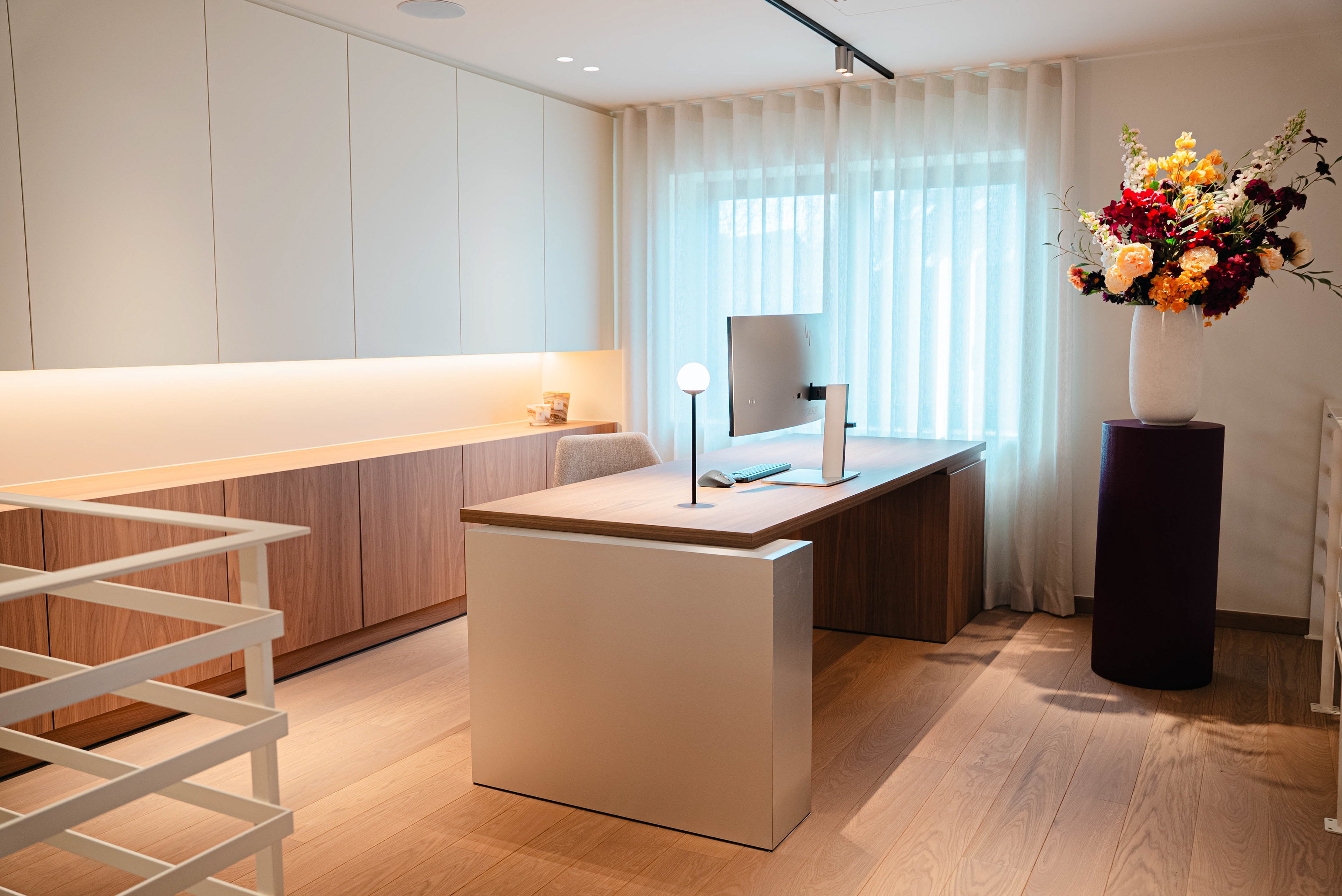 Hier hebben we traditioneel schilderwerk uitgevoerd van muren en plafonds, alsook lakwerk van houten en metalen schrijnwerk, met oog op kritisch lichtinval van zowel led-verlichting en zonneschijn. De vloer is ook door ons afgewerkt met de naadloze stuc-techniek 'Stone Art'. Een zachte en subtiele uitstraling, mét karakter.